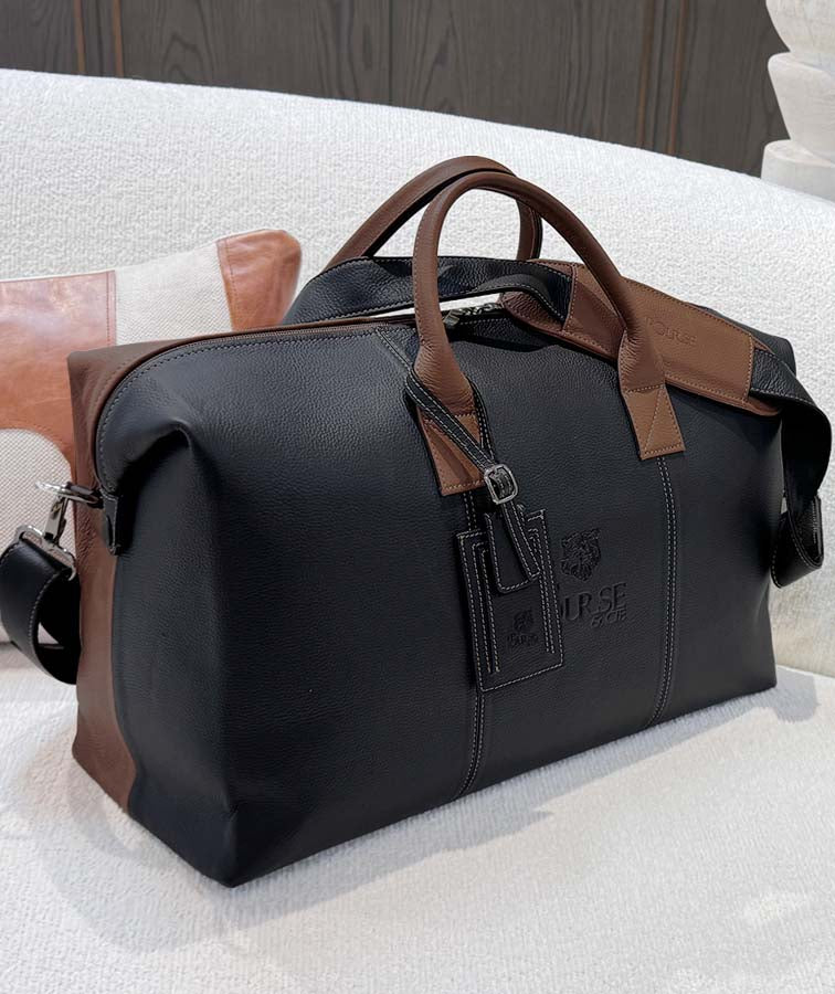 The Edward is a spacious structured carryon duffel handcrafted in a combination of two tone top grain leather. The rolled handles fit comfortably in the curve of your hand and the wide adjustable and detachable shoulder strap rests comfortably on the shoulder or crossbody. A zippered wall pocket on the back of the bag provides security and easy access for documents. The fully lined interior has an additional zippered wall pocket. The Edward is sure to be your stylish travel companion.