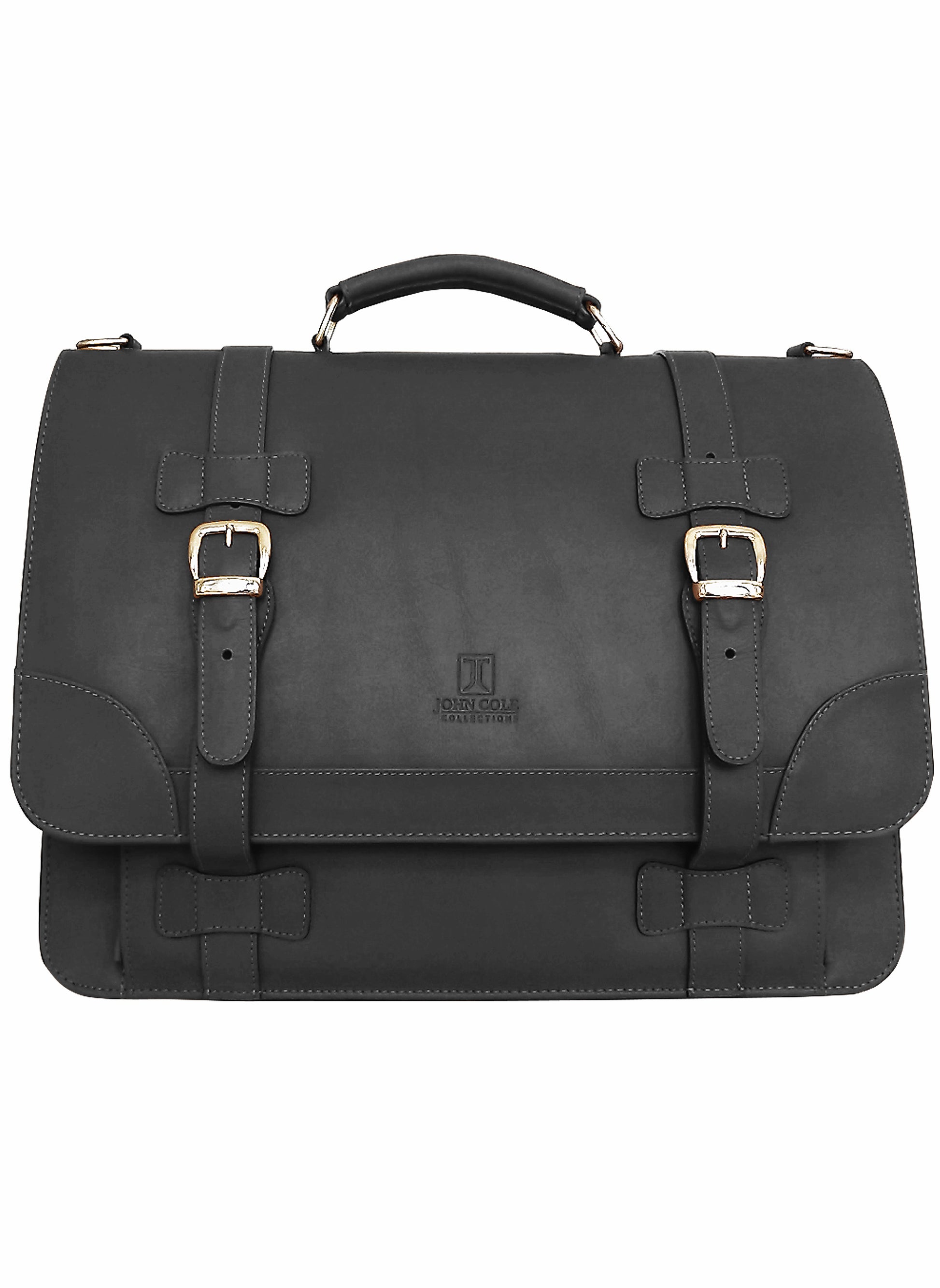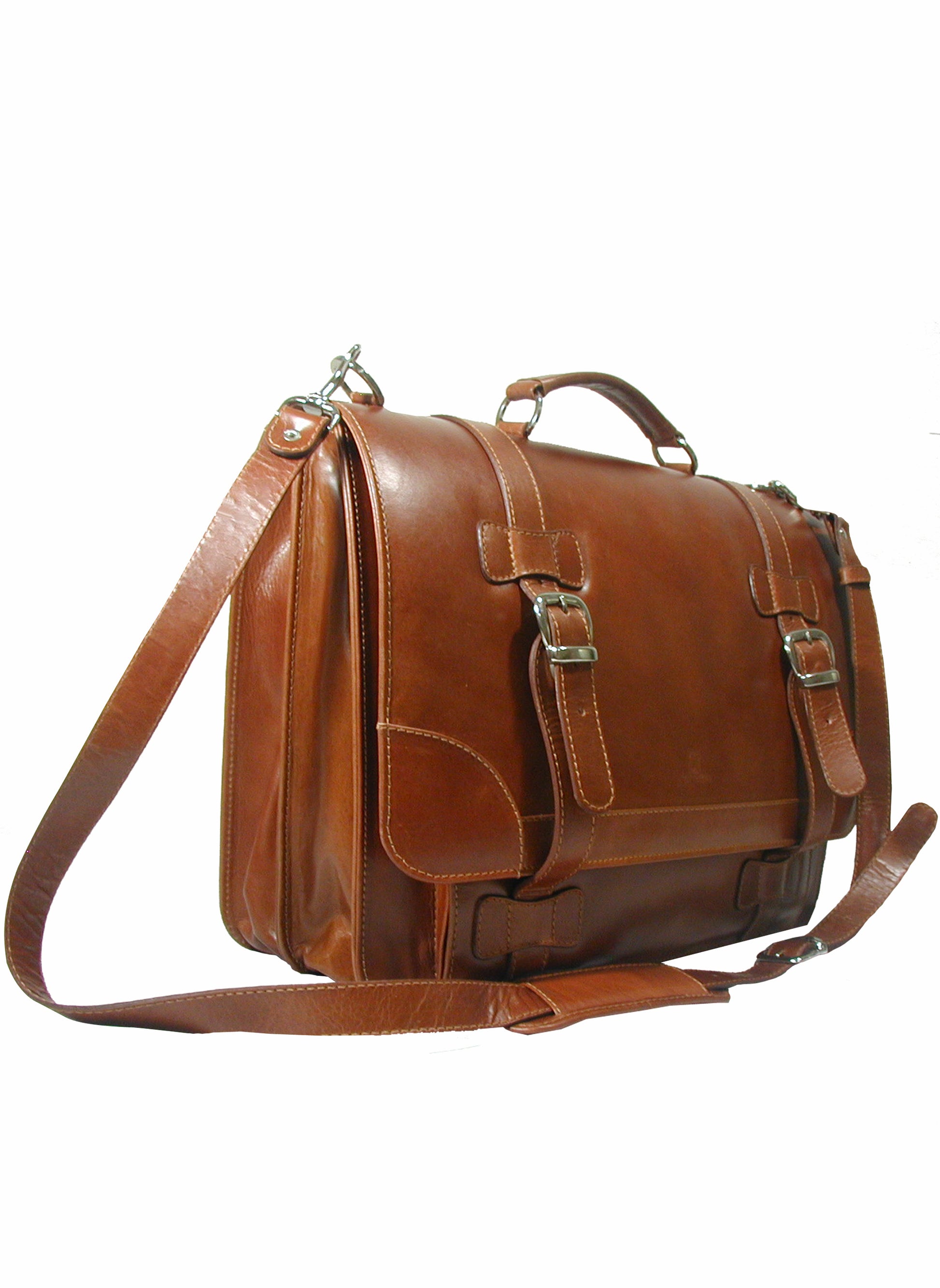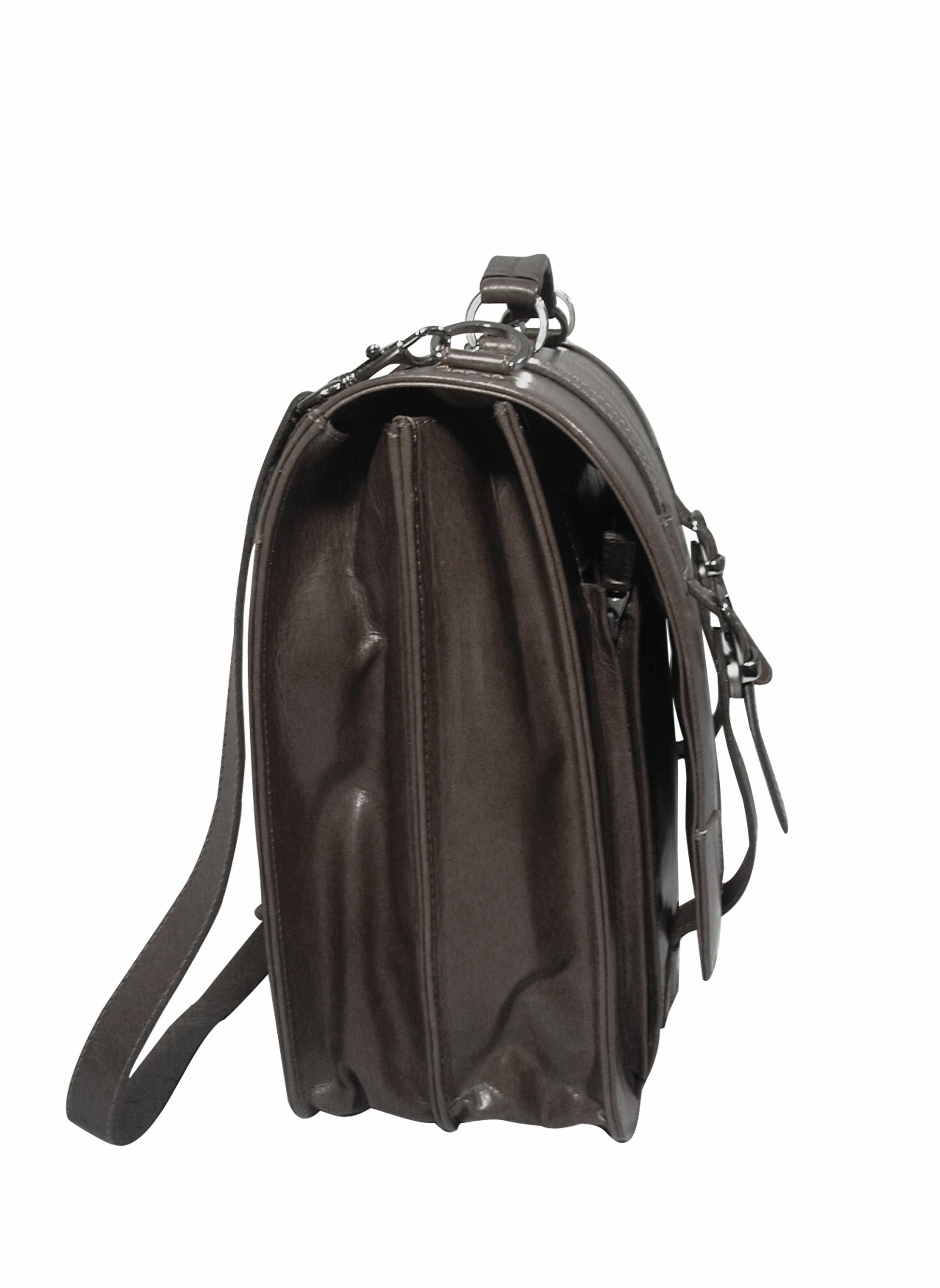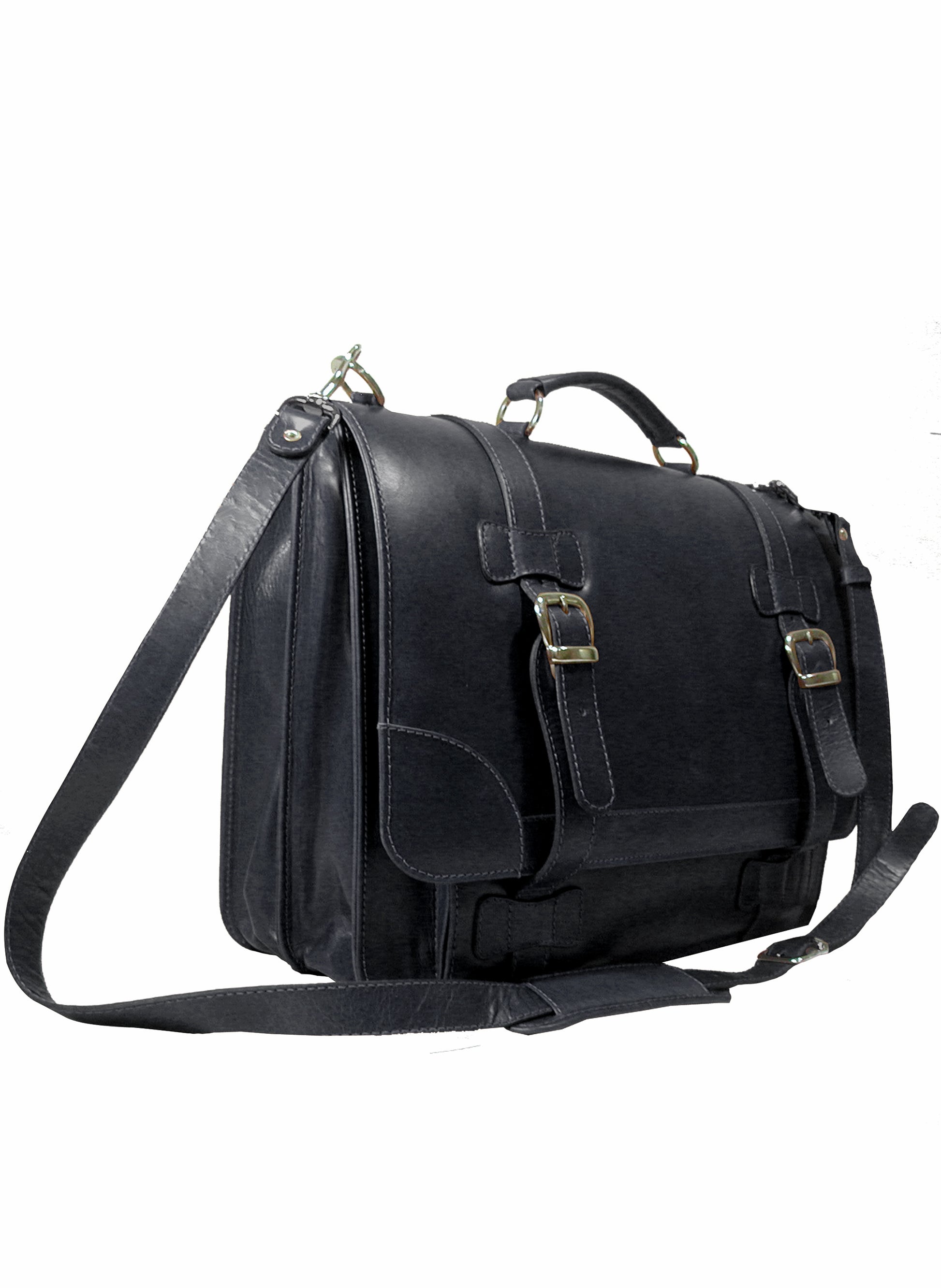 Our Thomas is a sophisticated briefcase with classic lines. Handcrafted in smooth Crinkled Cowhide leather, this briefcase / laptop bag is structured with expandable side gussets to make sure you are able to fit all essentials. Magnetic snaps are hidden under the decorative front buckles allowing easy access to the interior which reveals two deep wells for computer, files and hardware. We have also included a center zippered compartment for files and papers as well as several zippered side wall pockets and an organizer for cell phone, pens, cards and other items to keep you in order. The adjustable strap has a padded shoulder rest and we have included a leather handle for carrying ease.